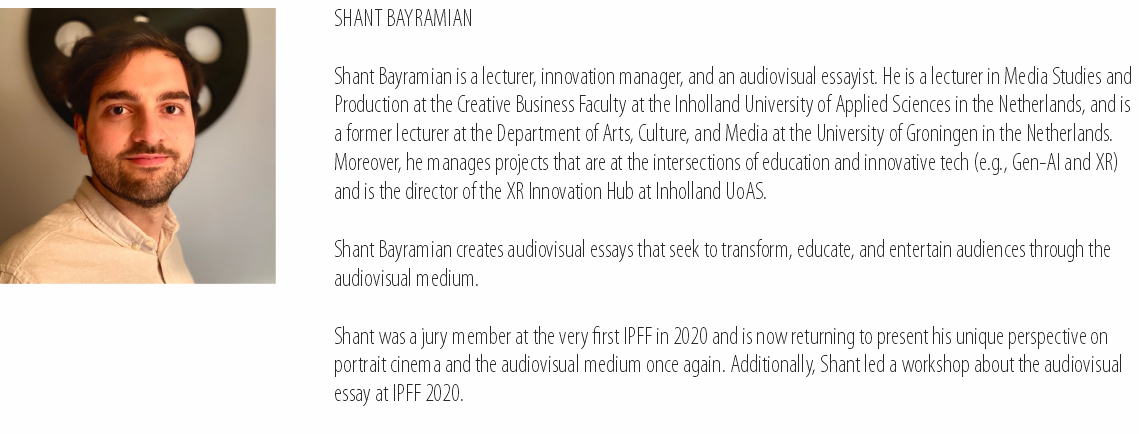With these aspirations, in the second edition of the festival, we launch new activities to turn IPFF into a living and active platform for ideas and experiences related to portraiture as a cinematic prism and a cultural phenomenon.